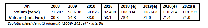 În urmă cu 10 ani, consumul de vată minerală se situa la un volum de 71.000 tone și o valoare de circa 81 milioane de euro. În 2010, piața ajunsese sa atingăcei mai scăzuți indicatori comerciali din intervalul menționat, până la 50.000 de tone în volum și 38 de milioane de euro în valoare. După acest an, piața de vată minerală a crescut treptat, atingând în 2016 volume de 92.000 de tone, la o valoare de circa 58 milioane de euro.